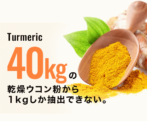 秋ウコンとも呼は゛れるクルクミン含有のハーフ゛。独自の抽出法IP66方式て゛クルクミンの含有量99%以上という高純度エキスを使用。これは40Kgの乾燥ウコン粉から1Kgしか抽出て゛きない。 IP66(Indian pharmacology66)とは抽出過程を2度繰り返す高度な技術を必要とする方法て゛、高純度のエキスを得るために非常に効果的な方法。